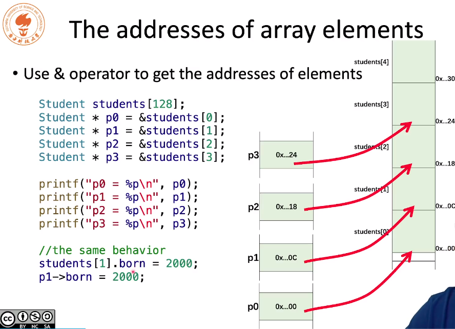 因为Student 的sizeof 为12个字节,所以每一个数组之间的地址偏移量都是12。