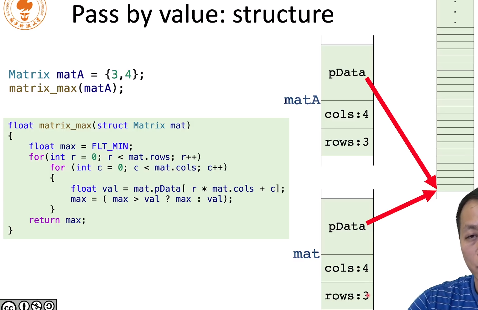 传递struct也是一样,被copy了一份到mat中,在原始的matA中,pData保存的是地址,因此对mat修改地址所指的值也会影响matA