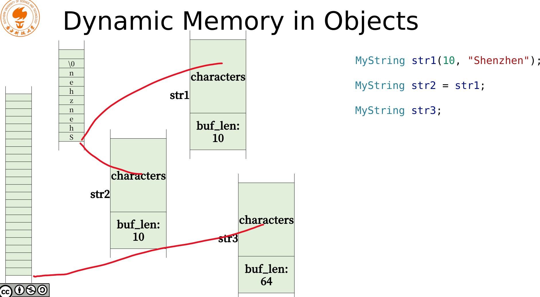 现在添加一行,赋值str1给str3,调用了默认的赋值函数。这样str3的指针就指向了str1.
