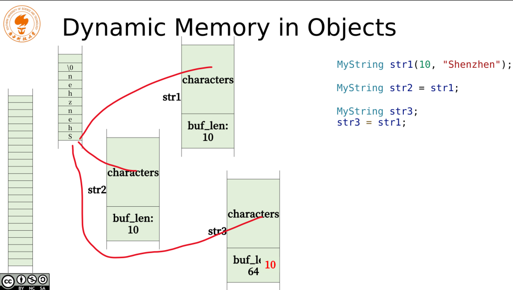因为是默认拷贝构造函数,他会把str1中存的内容完全拷贝一份出来,因此指针的地址也会被拷贝一份出来,所以str2和str1的中的数据都指向同一块内存